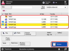 * Kun useita tiedostoja on valittu, tiedostot tulostetaan siinä järjestyksessä kuin valinta on tehty (valintaruutujen numerojärjestyksessä).