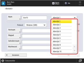 Selecteer de adreslijst waarin u de bestemmingen wilt registreren.