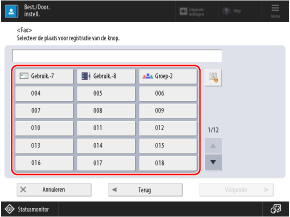 Wanneer u groepsbestemmingen registreert, ziet u het volgende: