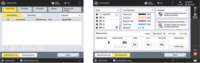 Dit scherm verschijnt als u op het bedieningspaneel op [ Statusmonitor] drukt.