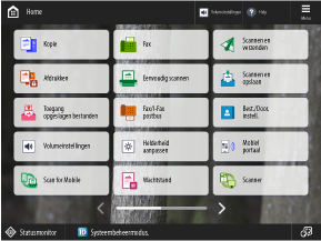Of het selectiescherm wordt weergegeven, hangt af van de machine-instellingen en rechten van de ingelogde gebruiker. De toegestane handelingen en schermweergaven voor gebruikers configureren