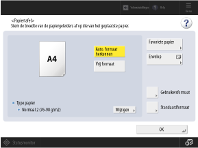 Als papier wordt geplaatst van een formaat dat niet automatisch wordt gedetecteerd, of als een ander papierformaat wordt weergegeven zelfs nadat het papier opnieuw is geplaatst, drukt u op [Standaardformaat] en selecteert u het formaat van het geplaatste papier.