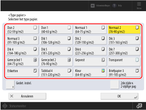 Druk op [Gedet. instel.] en selecteer het papiertype in de weergegeven lijst.