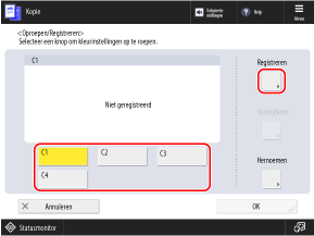 Selecteer de knop waarop u de huidige instellingen wilt registreren en druk op [Registreren].