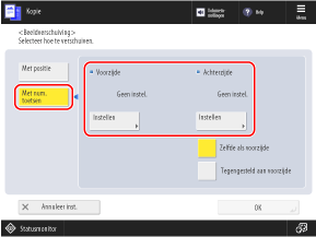 Om de achterkant te configureren met dezelfde instellingen als de voorkant, selecteert u [Zelfde als voorzijde].