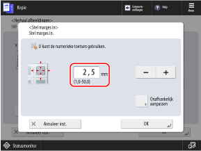 U kunt de positie van het hele origineel naar een rand of het midden van het papier verschuiven, of de verschuivingsafstand in millimeters opgeven.