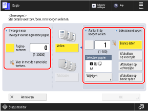 Druk op de knop [Paginanummer] om deze te selecteren en geef met de numerieke toetsen het paginanummer op waar het papier moet worden geplaatst.