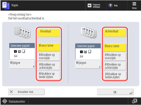 Selecteer [Voeg omslag toe] en [Achterblad] om in te stellen of u op het voor- en achterblad wilt kopiëren.