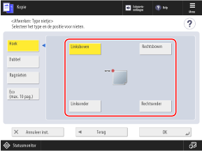 Selecteer of u wilt beginnen met kopiëren aan de binnen- of buitenkant van het gevouwen papier.