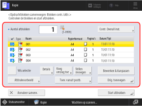 Geef het aantal kopieën op en controleer de kopieerinstellingen van de gescande originelen.