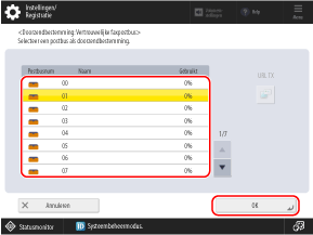 Selecteer de vertrouwelijke fax-postbus die u wilt gebruiken als doorstuurbestemming of opslaglocatie en druk op [OK].