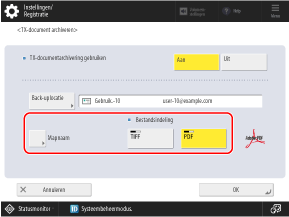 Stel [TX-documentarchivering gebruiken] in op [Aan].