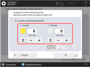 Gebruik het bedieningspaneel om de secundaire overdrachtsspanning aan te passen. U kunt de aanpassingswaarden instellen met Remote UI (UI op afstand) vanaf een computer, maar u kunt de grafiek niet afdrukken.