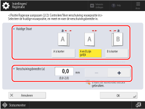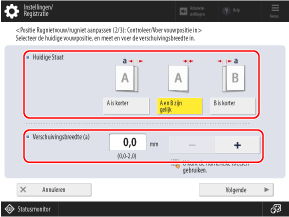 Deze aanpassing kan de instellingen [Corrigeer achterrand tonertoepass.] en [Aanpassen beeldpositie] beïnvloeden. Pas deze instellingen indien nodig aan.
