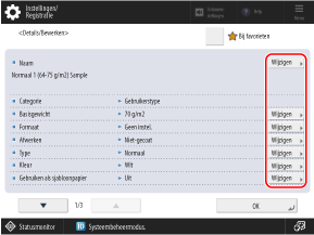 U kunt op [Wijzigen] drukken voor elk item om de informatie over het papiertype te wijzigen.