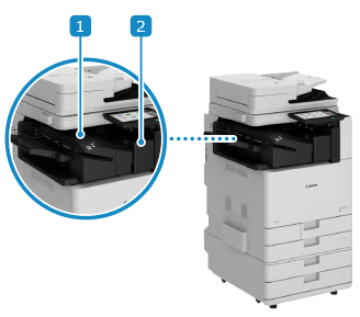 Maakt het gebruik van twee uitvoerladen mogelijk, één boven en één onder als 1st Copy Tray Kit-C is geïnstalleerd.