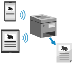 U kunt een app gebruiken om gegevens af te drukken vanaf een mobiel apparaat dat is verbonden met de machine. Het apparaat ondersteunt Directe verbinding, waardoor u de verbinding eenvoudiger kunt instellen zonder dat u een draadloze LAN-router hoeft te gebruiken.