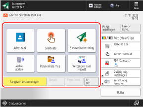 U kunt de opgeroepen bestemming en scaninstellingen wijzigen en gescande gegevens verzenden.