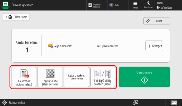 Met Eenvoudig scannen en zenden/Eenvoudig scannen kunt u basisfuncties configureren zoals de opgegeven bestemmingen en kleurinstellingen door eenvoudige toetsbewerkingen uit te voeren.