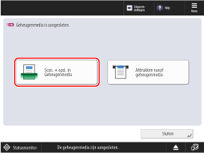 Als het scannen van het origineel is voltooid, worden de gescande gegevens opgeslagen. Druk op [ Statusmonitor] om de opslagstatus en het logboek te controleren. De verzend- of opslagstatus en het logboek van de gescande gegevens controleren