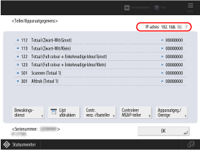 Het scherm [Teller/Apparaatgegevens] wordt weergegeven.