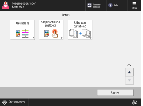 Druk op de knoppen op dit scherm om de gedetailleerde afdrukinstellingen te configureren. Druk na het configureren van de afdrukinstellingen op [Sluiten] om terug te gaan naar het scherm met afdrukinstellingen.