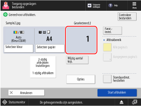 Om het afdrukken te annuleren, drukt u op [Annuleren]. Afdrukken annuleren via het bedieningspaneel