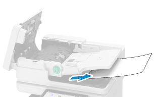 Als er een origineel in het deksel van invoer is vastgelopen, trekt u het er voorzichtig in de richting van de pijl uit.