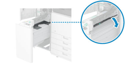 Verwijder het papier dat in de finisher is vastgelopen. Volg de instructies op het bedieningspaneel om de locatie van de papierstoring te controleren en het vastgelopen papier te verwijderen.