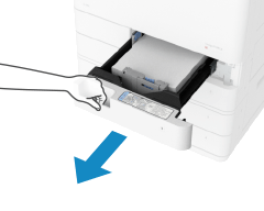 Als de machine in de sluimermodus staat, kunt u het papiermagazijn mogelijk niet uittrekken. Tik eerst op het scherm om de sluimermodus te verlaten en trek vervolgens het papiermagazijn naar buiten.