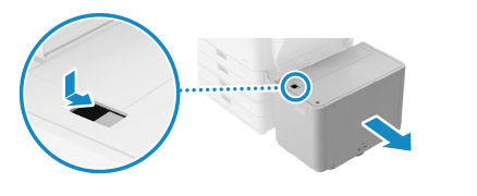 Als de optionele papiermagazijneenheid is geïnstalleerd, drukt u op de ontgrendelingshendel en trekt u de papiermagazijneenheid weg van de hoofdeenheid.