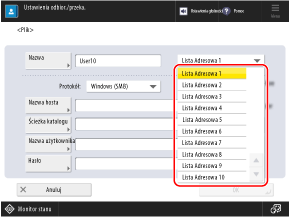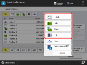 Na ekranie skanowania (Skanuj i wyślij) lub faksu możesz nacisnąć przycisk [Książka adresowa], aby zarejestrować odbiorcę z ekranu książki adresowej.