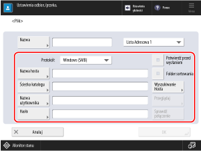 Jeśli wybrano [Windows (SMB)] lub [FTP] dla [Protokół]