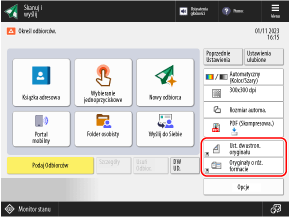 Możesz zastąpić następujące przyciski wyświetlane na ekranach skanowania (Skanuj i wyślij), faksowania i kopiowania przyciskami w menu [Opcje] i ukryć te przyciski.