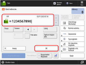 Sprawdź informacje dotyczące odbiorcy i naciśnij [OK].
