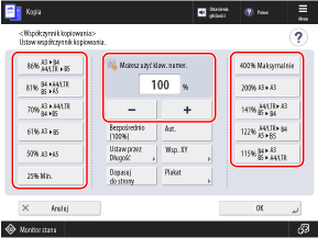 Na ekranie kopiowania naciśnij [Współczynnik kopiowania].