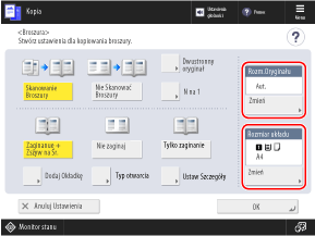 Naciśnij [Zmień] w [Rozm.Oryginału], a następnie wybierz format oryginału i naciśnij przycisk [OK].
