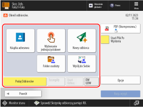 Na panelu sterowania naciśnij [Skrz. Odb. Faks/I-Faks] na ekranie [Strona główna]. Ekran [Strona główna]