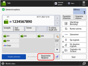 Faks może zostać wysłany do nieprawidłowego odbiorcy, jeśli ustawienie odbiorcy dla poprzednio wysłanego faksu pozostanie niezmienione. Zresetuj ustawienie przed wykonaniem operacji.