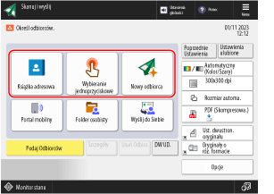 Aby przywołać ustawienia używane do wysyłania zeskanowanych danych w przeszłości, możesz nacisnąć [Poprzednie Ustawienia]. Odbiorca wysyłania jest również stosowany wraz z przywołanymi ustawieniami.