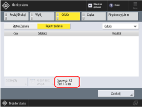Jeśli opcja [Sprawdz. RX Zad. I-Faksu] nie jest wyświetlana, wybierz opcję [Odbiór] z menu rozwijanego w prawym górnym rogu ekranu.