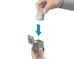 Załaduj nowy pojemnik ze zszywkami w zasobniku na zszywki.