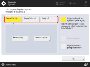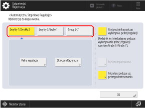 2, aby ustawić zakres stosowania skróconej regulacji. Domyślnie ustawione jest [Grup. po rodz. papieru] i można wykonać kalibrację dla każdego rodzaju papieru wybranego w kroku