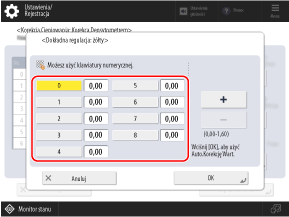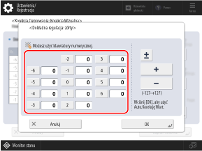 Użyj panelu sterowania, aby wykonać pełną regulację. Nie można przeprowadzić korekty za pomocą Remote UI (Zdalny interfejs użytkownika).