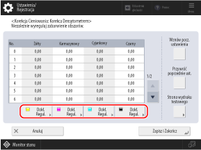 Aby przeprowadzić korektę, użyj panelu sterowania. Nie można przeprowadzić korekty za pomocą Remote UI (Zdalny interfejs użytkownika).