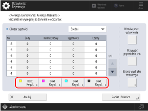 Korekta poprzez wprowadzenie wartości gęstości (sprawdzanie za pomocą densytometru)