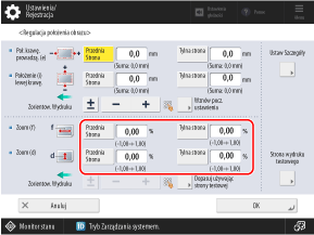 1, wprowadź obliczony współczynnik powiększenia lub pomniejszenia w polu [Zoom (f)] i [Zoom (d)], a następnie naciśnij przycisk [OK].