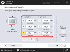 Wprowadź zmierzone wartości w polu [b] i [h], wprowadź wartość wskazaną poniżej w polu [c] i naciśnij przycisk [OK].