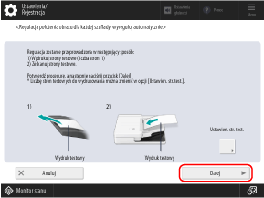 Strona(y) testowa(e) zostaje(ą) zeskanowana(e) i przeprowadzona zostaje regulacja.