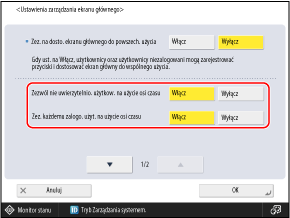 Ustaw tę opcję na [Włącz], aby umożliwić użytkownikom innym niż administratorzy dodawanie przycisków udostępnionych i wprowadzanie zmian w ustawieniach [Dostosuj do wspól. użytko.].